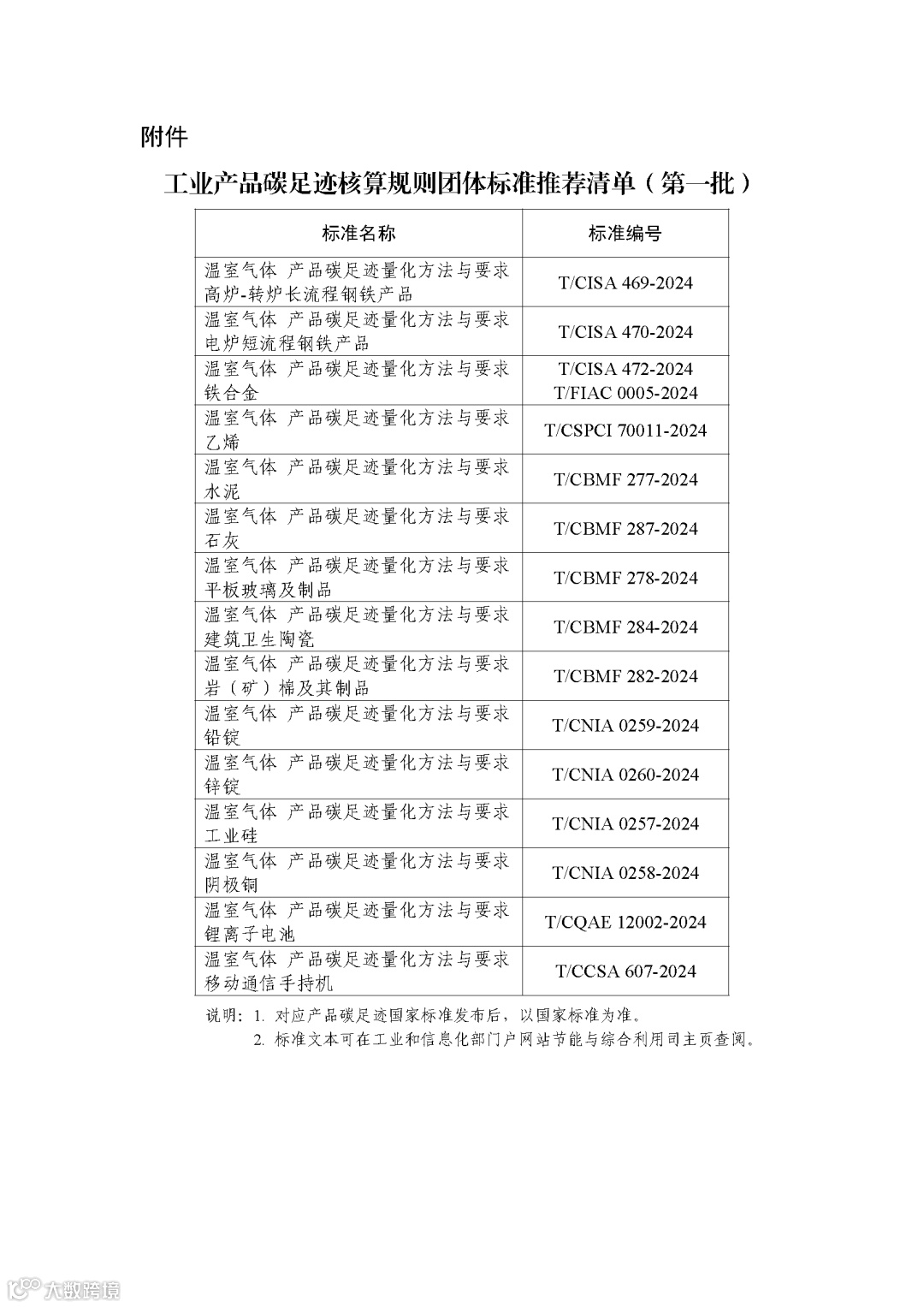 工业和信息化部 生态环境部 国家发展改革委 市场监管总局关于公布工业产品碳足迹核算规则团体标准推荐清单(第一批)的通告