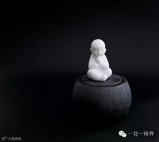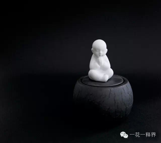 小沙弥恬静、安祥的形态给人以美感和启发,所谓“一沙一世界,一叶一菩提”,俗世之万般纷扰,终抵不过一颗宁静安详的心。不妨用安详的心态、静思的禅坐,感受一种平和与爱。