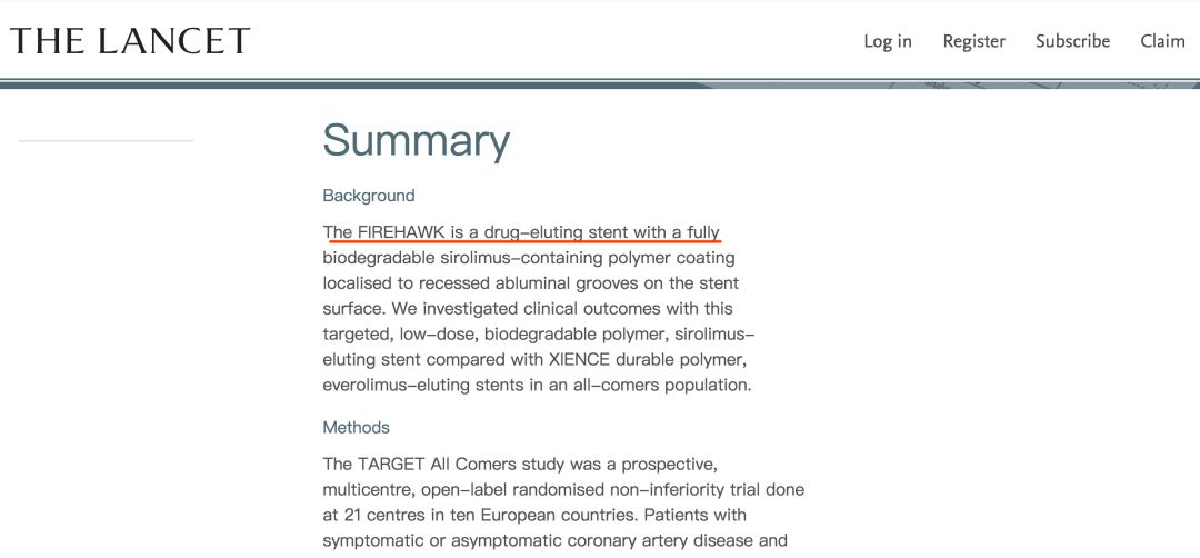 9月4日(英国时间2018年9月3日晚),世界顶级权威医学杂志《柳叶刀》(《The Lancet》)全文刊登了中国自主研发的Firehawk冠脉雷帕霉素靶向洗脱支架系统(以下简称:火鹰支架)在欧洲大规模临床试验(TARGETAC)的研究结果,称该研究破解了困扰世界心血管介入领域10多年的重大难题。