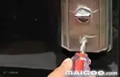 1、找到锁芯螺丝孔的位置.将锁芯螺丝拧下。