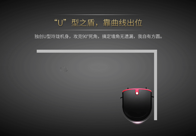 对于西默这款新产品,设计上的亮点之处,就是它独特的U型机身设计!比起传统的圆形扫地机器人,能够更好地进行沿边清扫。尤其是角落里的灰尘,利用平边与边刷配合清扫,可以更有效地对角落进行清洁,也可以更好地从角落或障碍物中轻易退出。
