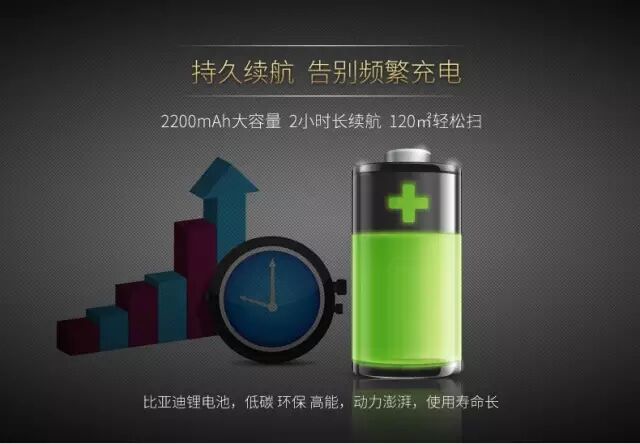机器人拥有2200mAh大容量电池,2小时持久续航,120平米轻松清扫!当机器人电量不足或者完成清洁之后,它还可以自动找回座充充电,不会碰撞家具,也不会跌落台阶,样子极其呆萌逗趣!