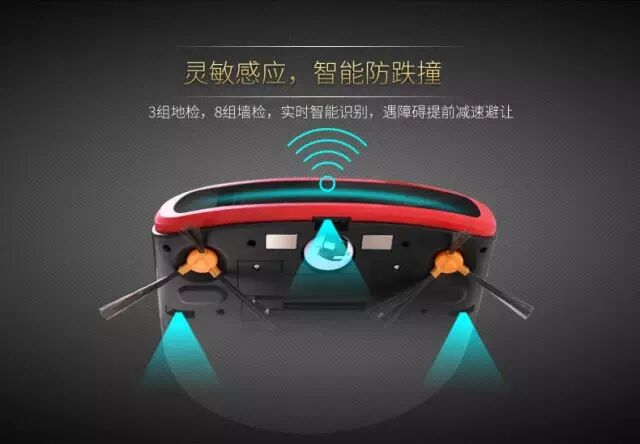 同时,机器人还可以感应出地面的高度。当高度大于特定值时,机器人将及时转向,避免跌落对机器人造成的损害。它还有角落探测系统,能够自动识别到墙边和墙角,平稳的沿着墙边行走并全面清扫角落。