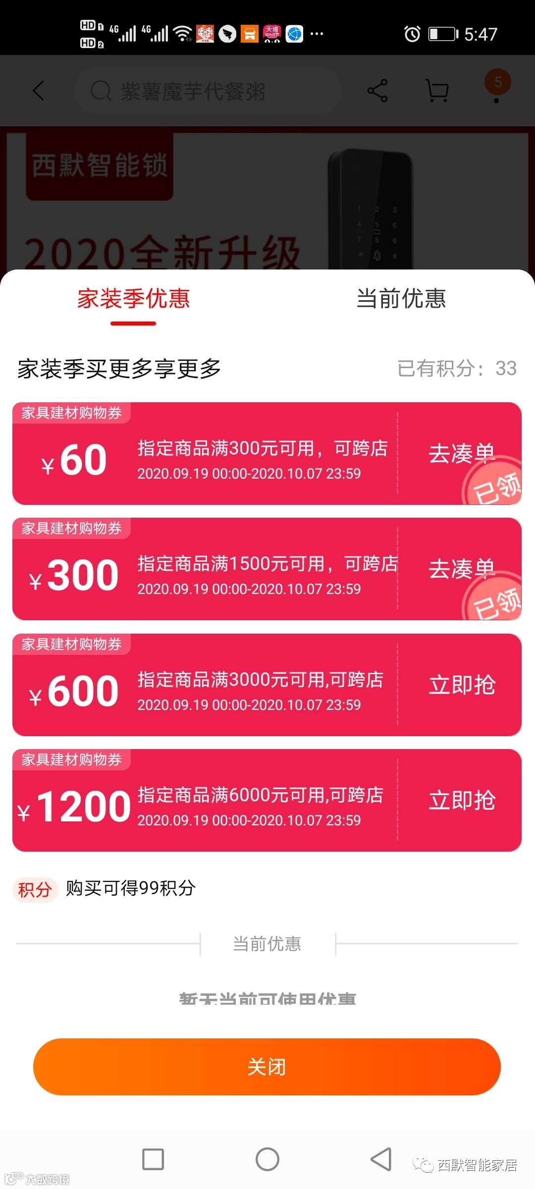 在西默智能锁参加“天猫家装季”期间,除了满减优惠以外,还可以跨店使用优惠券,这波操作是在太强大了!