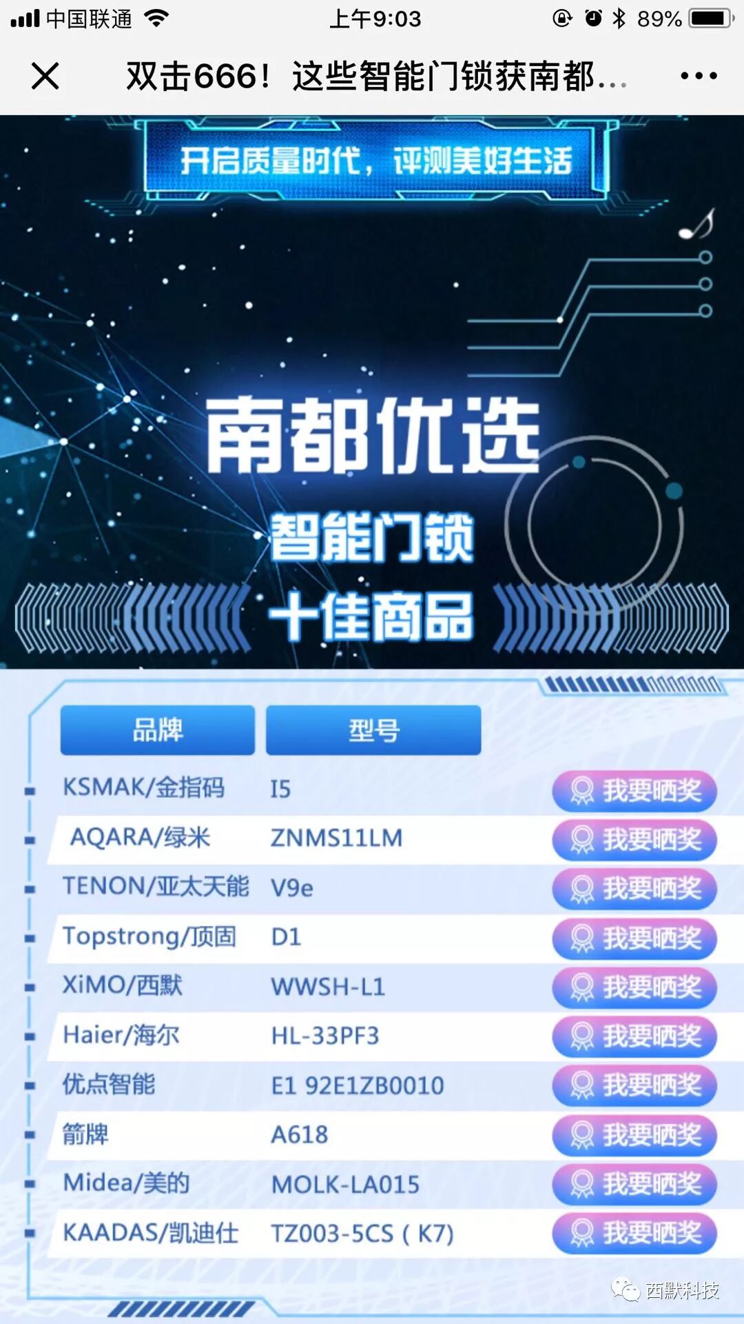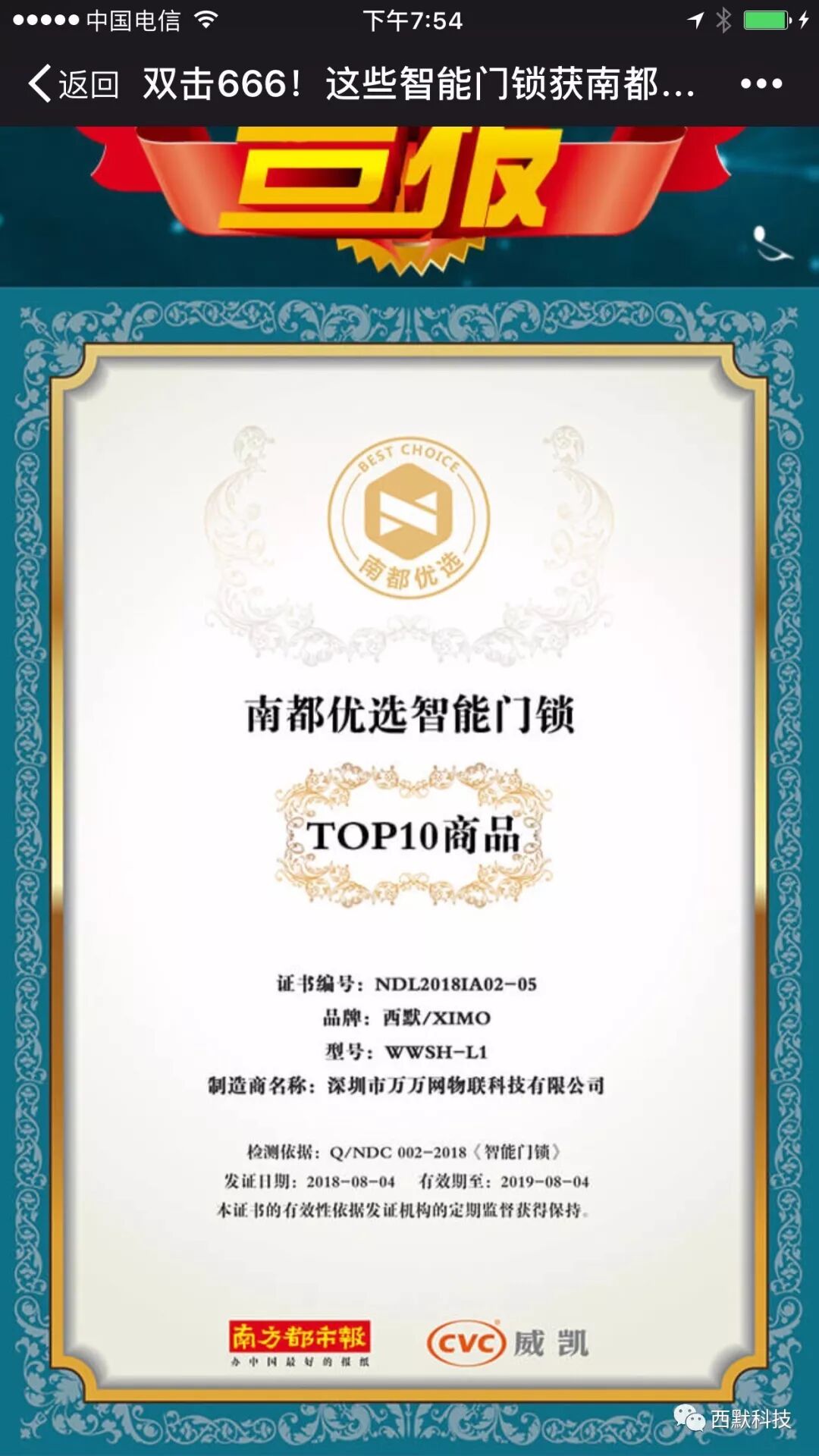 据某市报新消息:8月4日举办的《智能家居发展论坛》上《智能门锁评测试验报告》中,西默智能锁L1荣登第五名,南都优选智能门锁十佳商品、中国十大智能锁品牌双料第五,西默智能门锁用品质和口碑“走自己的路,随别人怎么说”演绎出别样的精彩!
