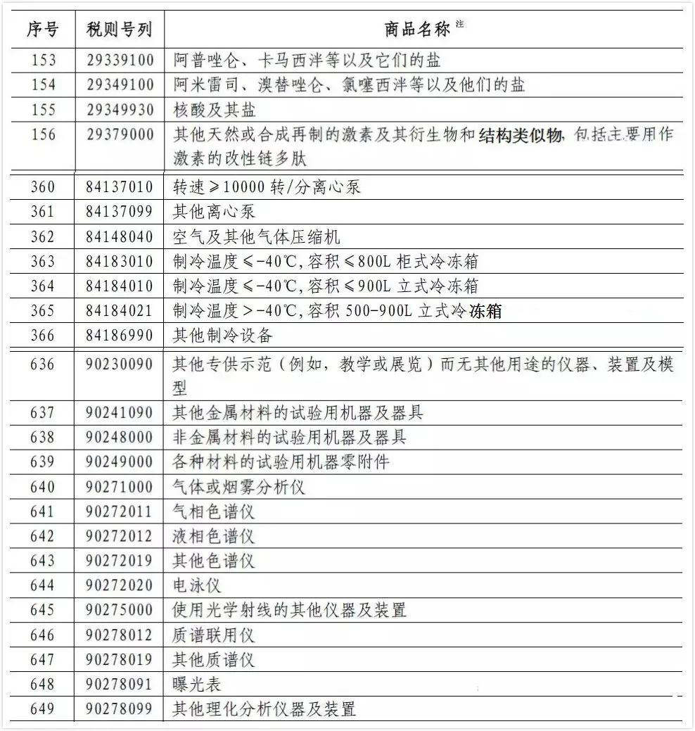 附件4所涉及的生物试剂和实验室常用物品(加征5%的关税)