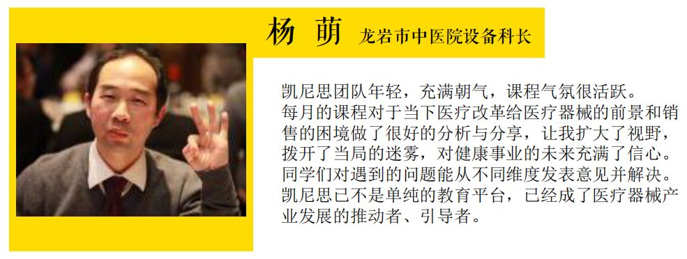 凯尼思商学院已成为众多优秀医疗器械企业家的共同选择,平台超强凝聚力和向心力为同学们人生和事业的持续发展提供了最有效的支持。