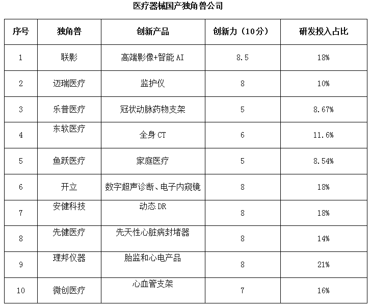 无一例外,这些独角兽都保持着8%以上的研发投入(营收占比),其中有些独角兽企业更是保持着20%~30%的研发投入,并每年在持续增加。这里面释放的是企业对技术与创新的勇气和追求,那些高喊着“振兴民族医疗”却保持着不到4%研发投入的企业,无一例外都在耍嘴炮。创新的唯一途径就是人才+投入,今天我们就盘点一下10家医疗器械行业国产独角兽公司。