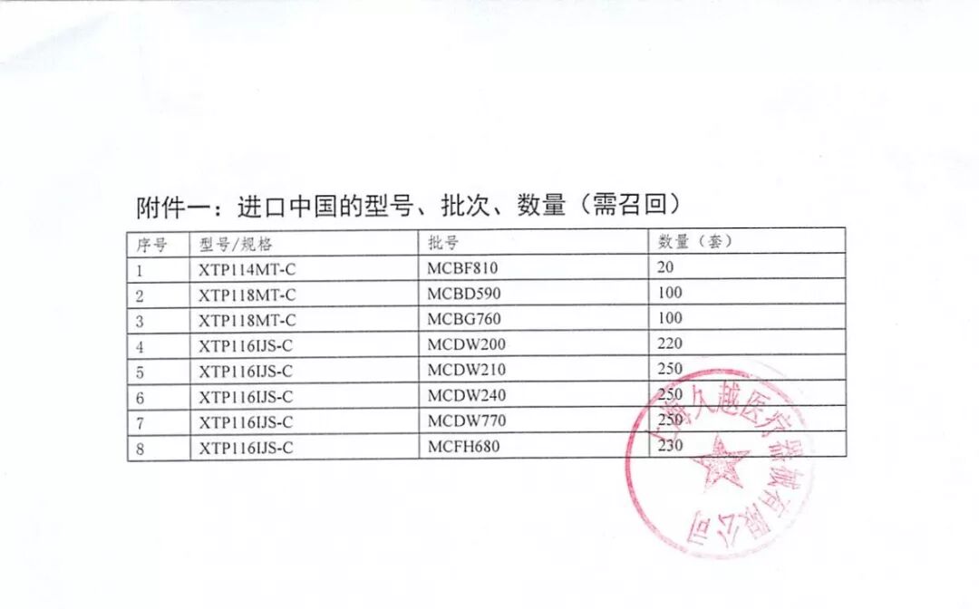 (详细信息见文章中的召回说明书)