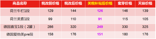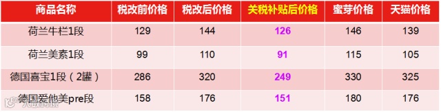 让我们首先看看这次关税补贴之后的奶粉价格: