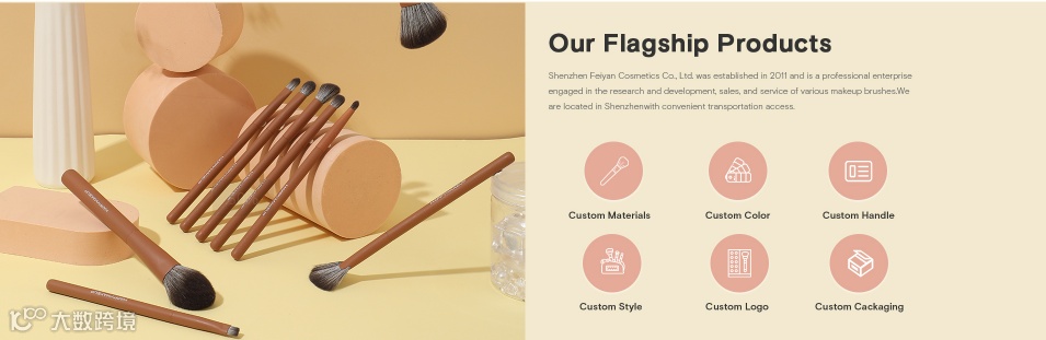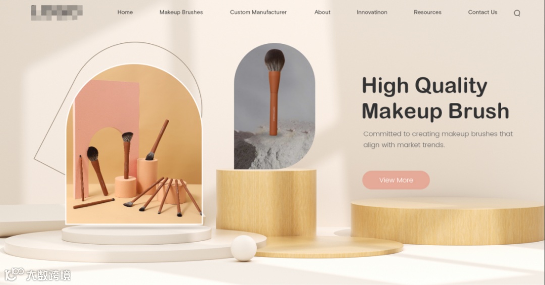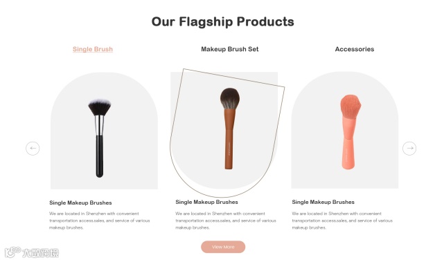 从网站的首屏设计来看,我们便能清晰地感受到化妆刷作为主角的重要地位。然而,由于化妆刷本身体积较小,若直接以单一产品大图呈现,难免会显得单调乏味,缺乏视觉冲击力。
