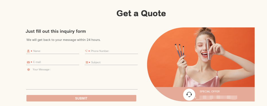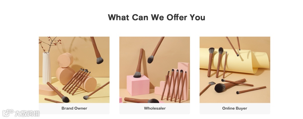 在这个网站中,小巧精致的化妆刷被反复呈现,但由于每一张图片都经过精心拍摄与处理,品质感突出,因此并不会让人感到视觉疲劳。相反,访客的视线被不断吸引并聚焦于产品本身,能够直观、清晰地了解化妆刷的细节与质感。这种视觉上的持续吸引力,也自然而然地提升了外商对品牌的好感与信任。