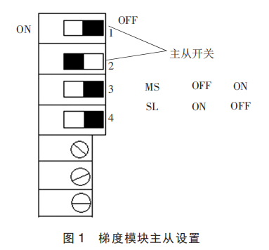 (4)如图1所示,检查3个梯度模块的主从设置。主设置:开关1off,开关2on;从设置:开关1on,开关2off。在关机的状态下,重新拨动开关,调整好主从设置,开机,3个模块正常工作。