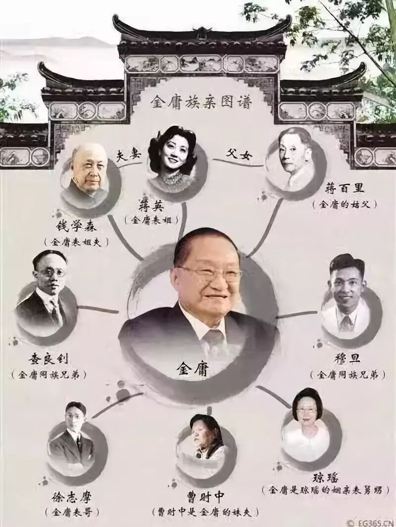 而金庸族谱旁系姻亲关系中,也有很多大家熟悉名字,比如: