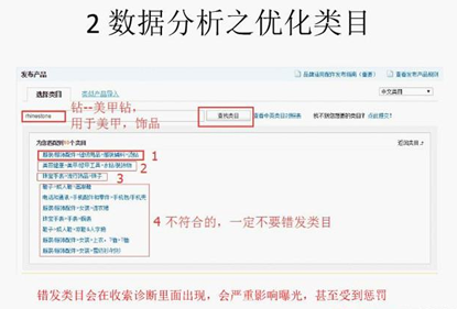 类目是非常需要注意的,错发类目会在搜索诊断里出现,会严重影响曝光,甚至受到惩罚。例如下图: