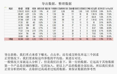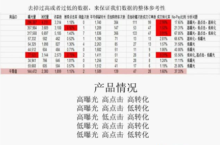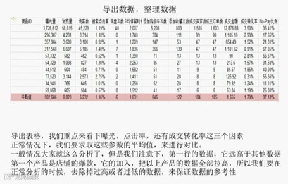 影响出单的三大因素:没有曝光,点击,转化。因为店铺产品很多,每个产品都有不同的问题,因此需要判断产品是否需要优化,基于数据来发现问题。运用数据纵横工具中的商品分析,导出数据库,分析曝光量,搜索点击率,成交转化率。
