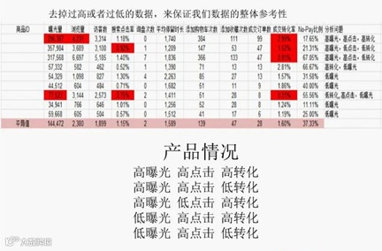 那么要注意的是,需要把过高或者过低的数据,来保证数据整体参考性。整理数据之后,将每个数据与平均值对比,了解产品的情况,发现哪个环节有问题。