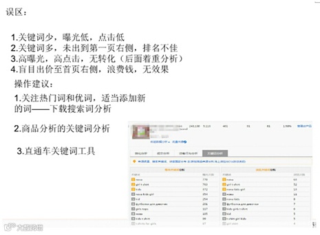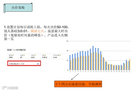 适时调整出价:关注出价排名,适时调价,晚上出价高,早上调低。出价前对关键词进行分析,是否排名有优势;关键词和产品匹配度,判断出价效果。