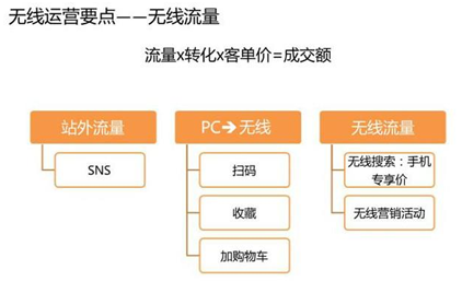 关于无线运营的要点主要通过两方面来讲,引入流量和转化流量。