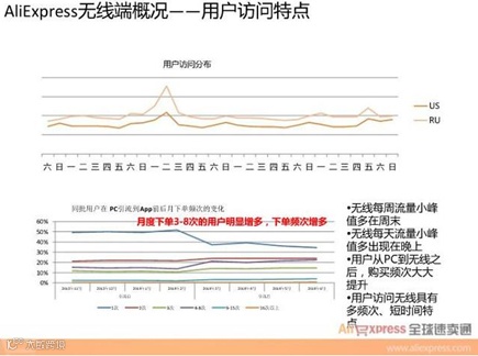 AliExpress2015年无线端成交金额增长显著,据最新统计数据,2015年3月日均无线端成交金额已是2013年下半年月日均无线端成交金额的4倍以上,目前无线端成交金额占平台总体大盘成交金额占比每月均在逐渐上升,无线端的增长速度高于pc端。