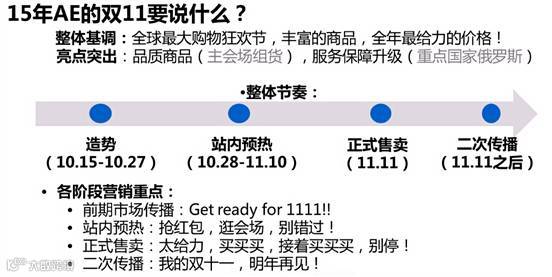 这次双十一速卖通重点强调品质商品全年最低价,PC+APPS双战场作战,线上线下引爆重点市场。