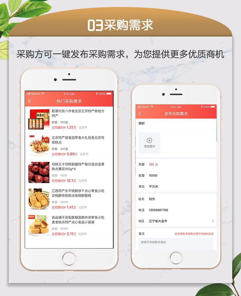 3、采购需求 采购方可一键发布采购需求,我们将为您提供更多更准确的商品信息供您选择。