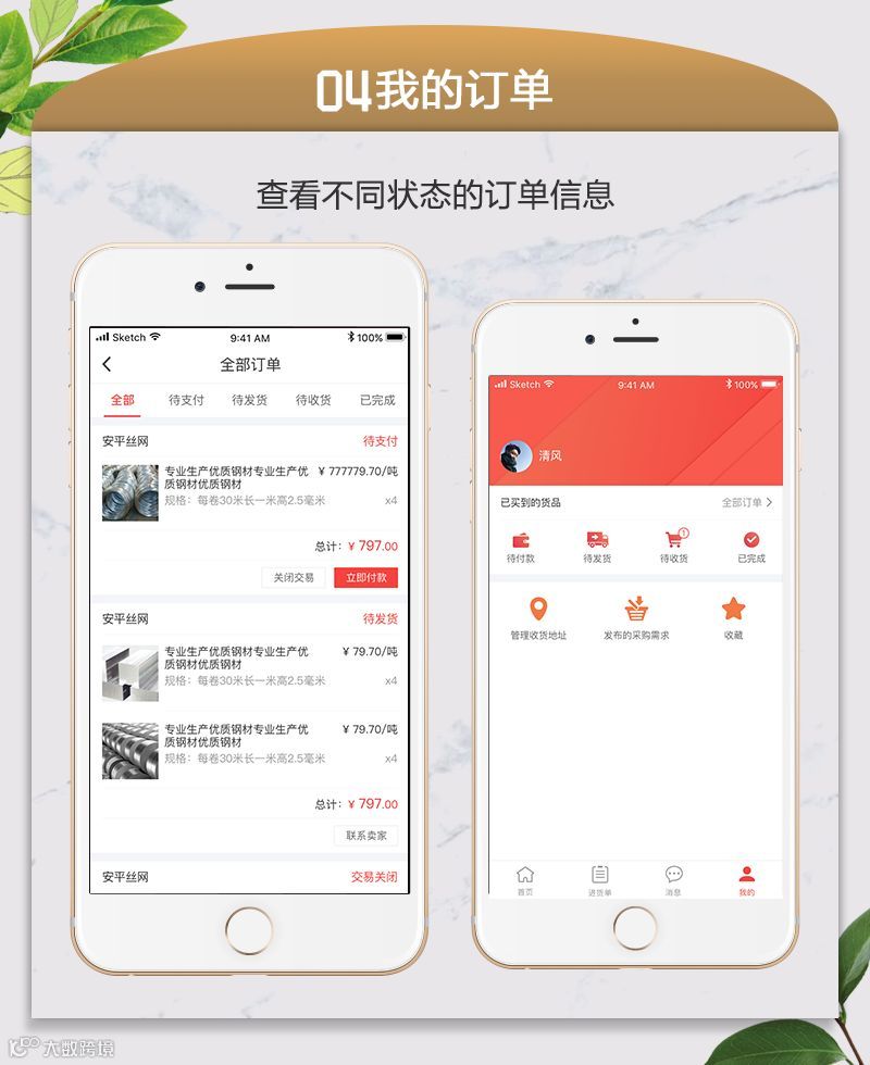 4、我的订单 用户可以看到不同状态的订单信息,迅速查找到所需对应订单。