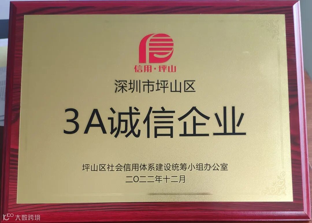 依据《深圳市坪山区企业信用综合评价实施办法》,依托坪山区公共信用平台归集的企业信用信息,经过对全区各类企业合规指数、经营指数、履约指数、荣誉指数、社会责任指数等五个信用指标的评分评级,将信用评分最高、信用等级为“AA”且获得过“A 级纳税人”称号的企业评定为“3A”诚信企业。