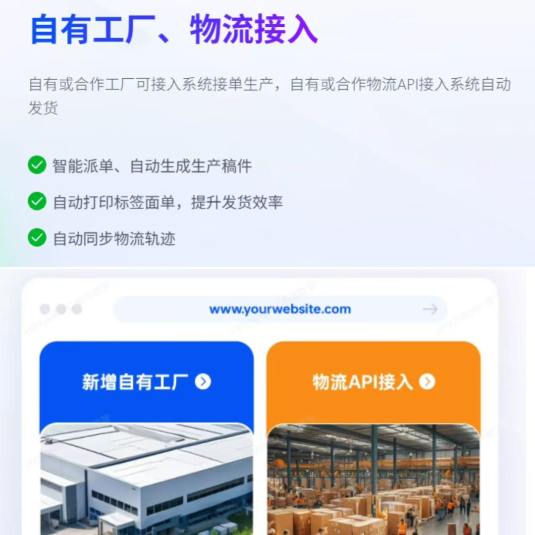 蜂鸟数智为卖家搭建的跨境POD供应链品牌站点,支持自有或合作工厂API接入,统一接单生产;支持自有或合作物流API接入,智能匹配最适配的物流方案,自动发货,提高供应链管理效率。