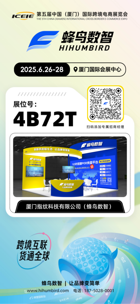 6月26日-28日,厦门国际会展中心,蜂鸟数智在【展位号:4B72T】等你,共赴全球POD生态盛会,一起智启跨境新未来!