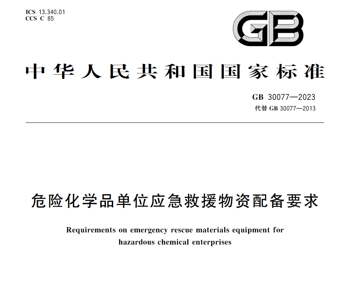 2023年12月28日,中国国家市场监督管理总局和国家标准化管理委员会正式公布了新的国家标准——GB30077-2023《危险化学品单位应急救援物资配备要求》。
