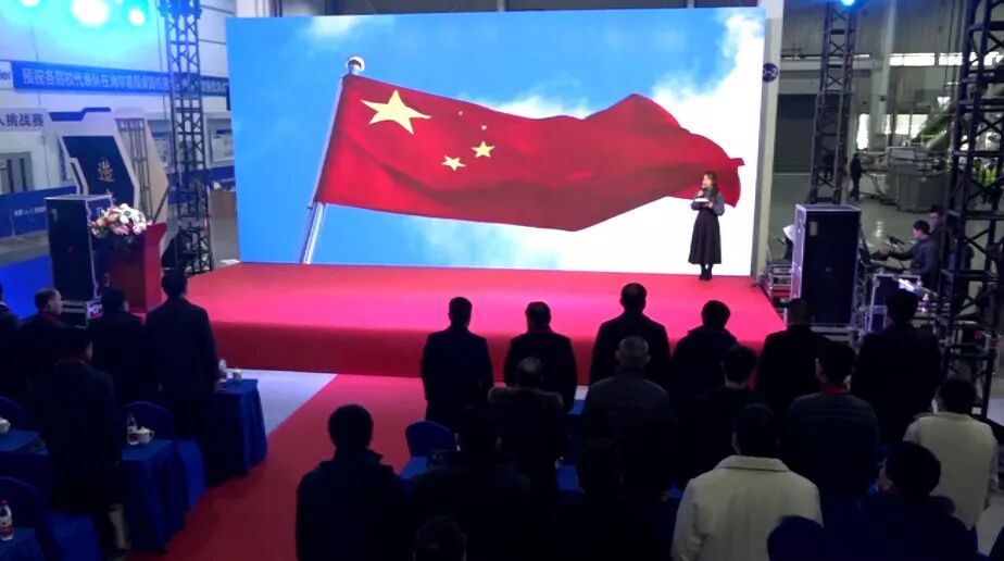 大会第一项,入会嘉宾及参赛选手全体起立,奏国歌!伴随着雄壮激昂的国歌响起,全体目视屏幕里五星红旗冉冉升起!