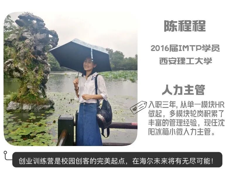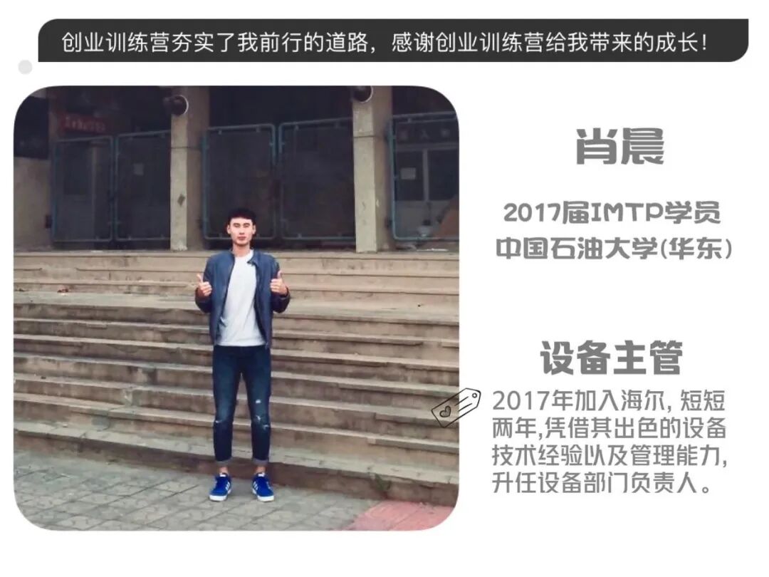 项目开展的四年间,众多优秀的校园创客通过创业训练营成为了海尔智家的一员,在各自岗位上创新创业、发光发热,不断刷新个人职业目标,实现人身价值。一起来看看往届学姐学长的风采吧~