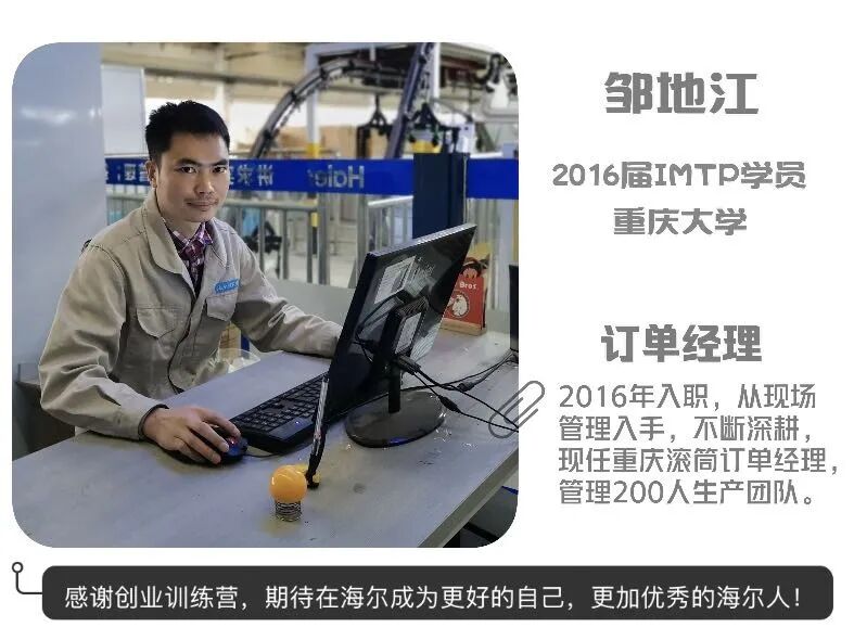 入职后,海尔开放创新的平台给予他们充分施展个人才能的机会,在他们对未来憧憬与职业目标的奋斗与努力下,他们成功完成了从学生到职场人的转变,成为了可独当一面的创客精英。这一路,从茫然到从容;未来,砥砺前行。