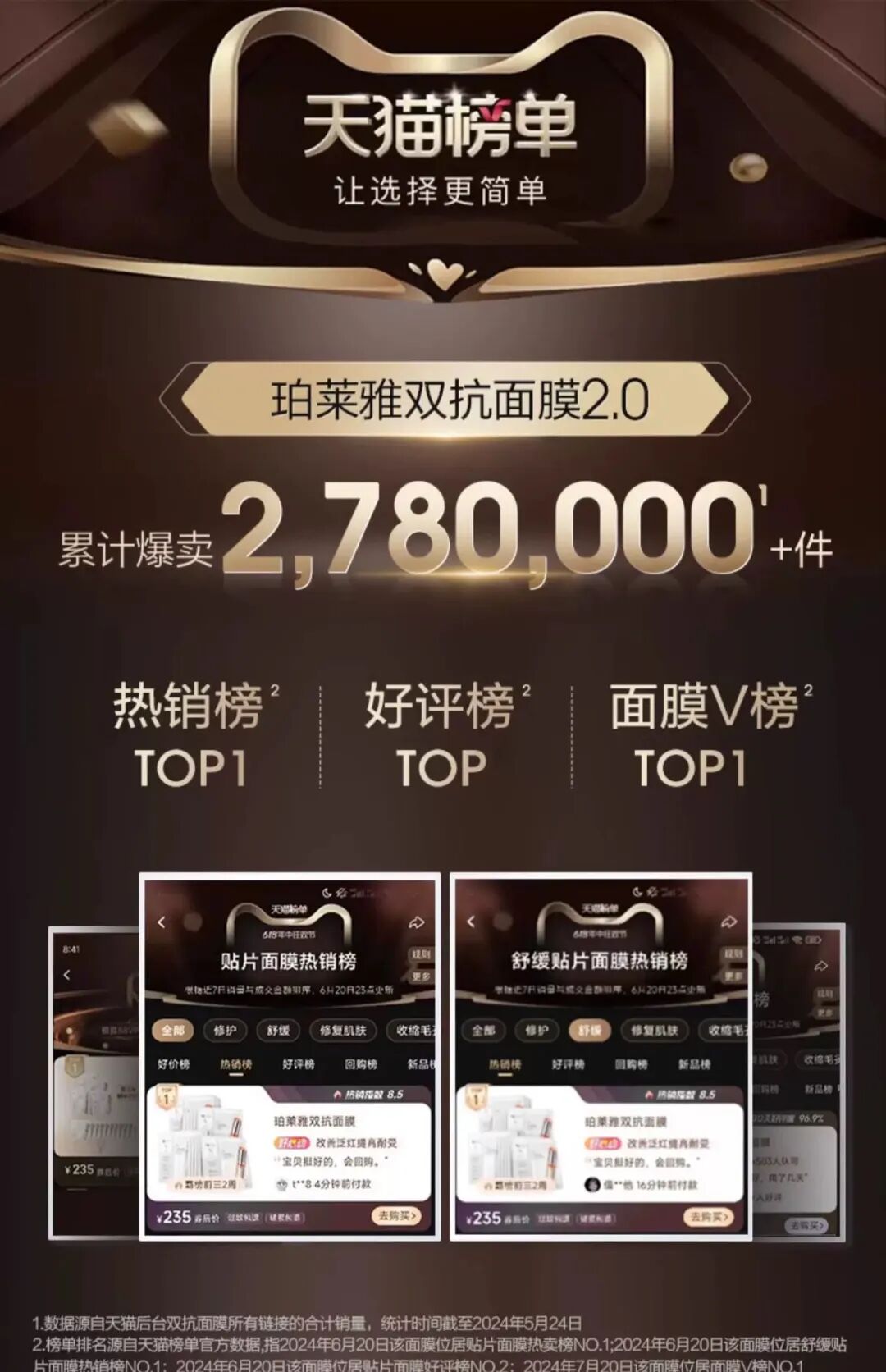 ✅天猫直接登上热销榜、好评榜和面膜榜第一