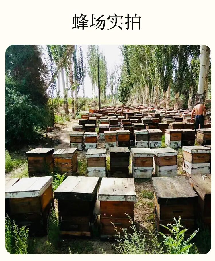 黑蜂采集了伊犁地区一年四季的所有蜜源植物,一年就取一次!属于多花蜜,多花就多营养!是新疆人家喻户晓的产品。