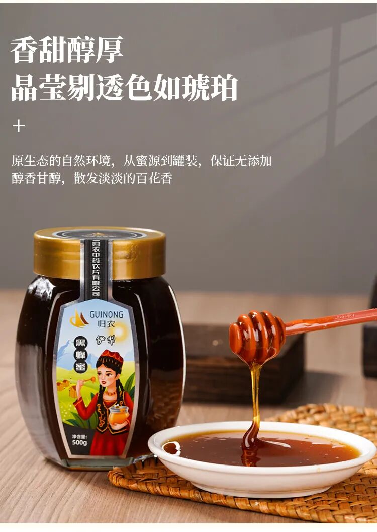 1.集百种花蜜精华!新疆黑蜂蜜,多花多营养,一瓶喝出四季滋补力