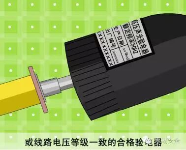 (4)使用验电器要戴绝缘手套逐渐靠近验电设备,直至验电器发出报警声响、提示光亮和“噼啪”的放电声为止。