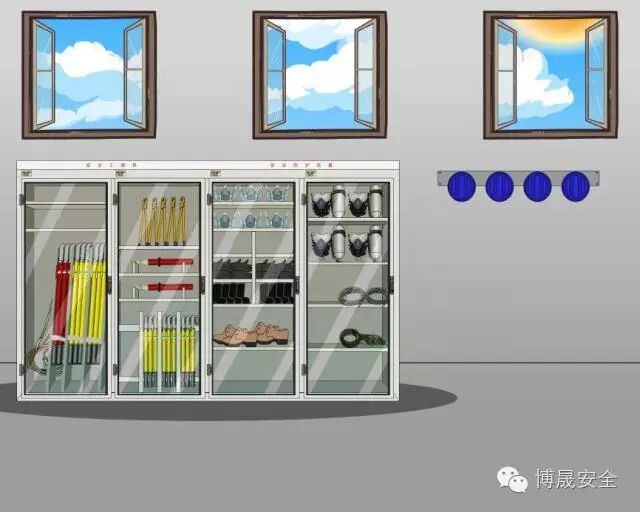 (3)存放安全用具的厨、架要排列整齐,安全用具存放有序,并保持清洁。