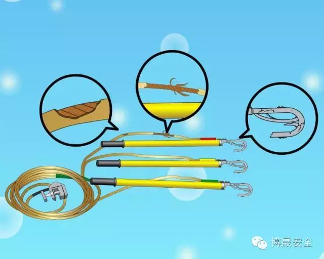 (5)携带型短路接地线等使用前应检查是否完好,如发现绞线松股、断股、护套严重破损、夹具断裂松动等均不准使用。