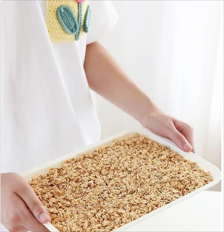 王饱饱采用独创的【整粒烘焙】工艺,可以在保留纤维的同时,让麦片拥有健康的脆韧口感!