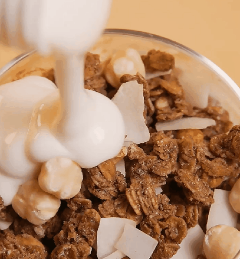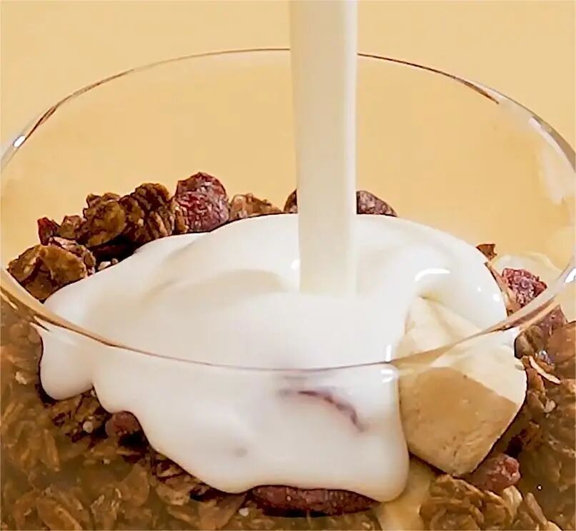 早上起不来的话,柒妹就会用酸奶直接拌开,一碗健康营养的早餐就迅速登场了。