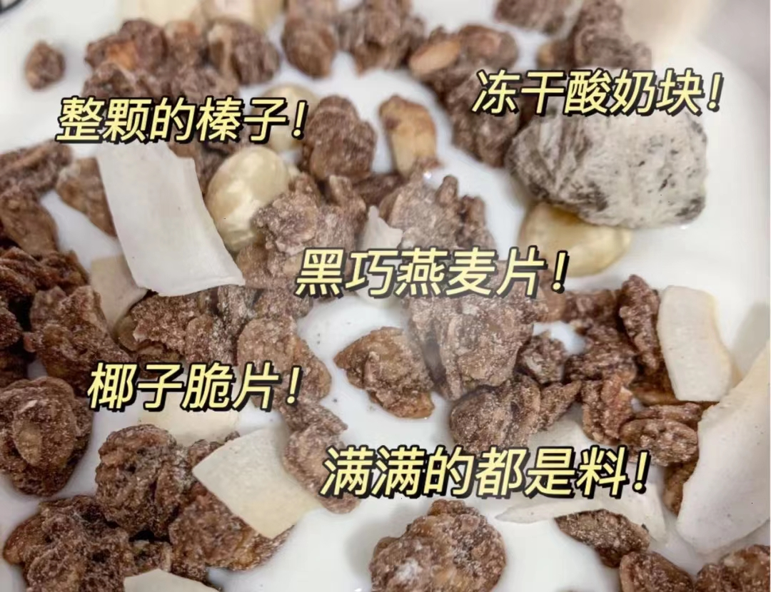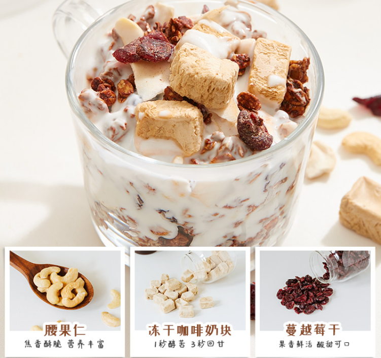 干吃麦片酥脆感人,还有大块的冻干咖啡奶块击中“心巴”。