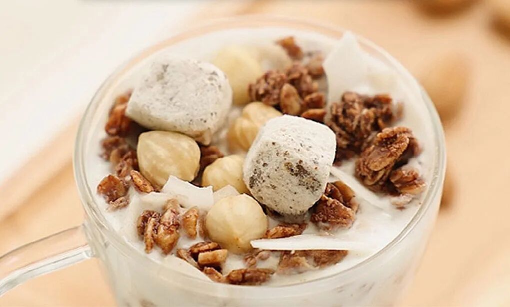 还有很多坚果酸奶搭配着,不光早餐可以有营养地迅速解决,我平时还可以把它当成“扛饿小零食”吃~