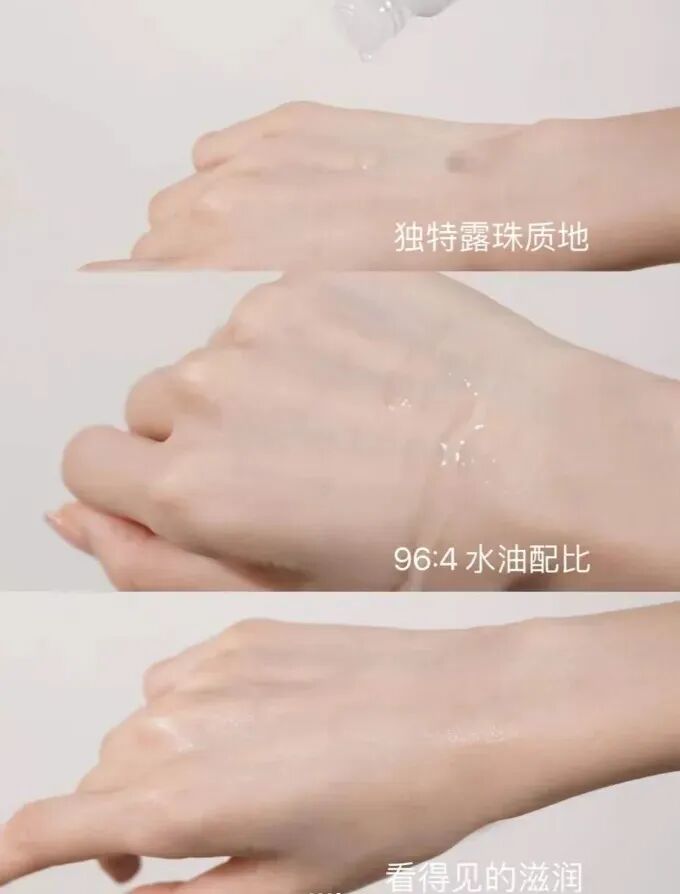 微囊科技96:4精准水油配比独特露珠质地,包裹着精华上脸推开会一个个爆开补水效果超级好,实现滋养保湿、以油补水、弹润透亮。