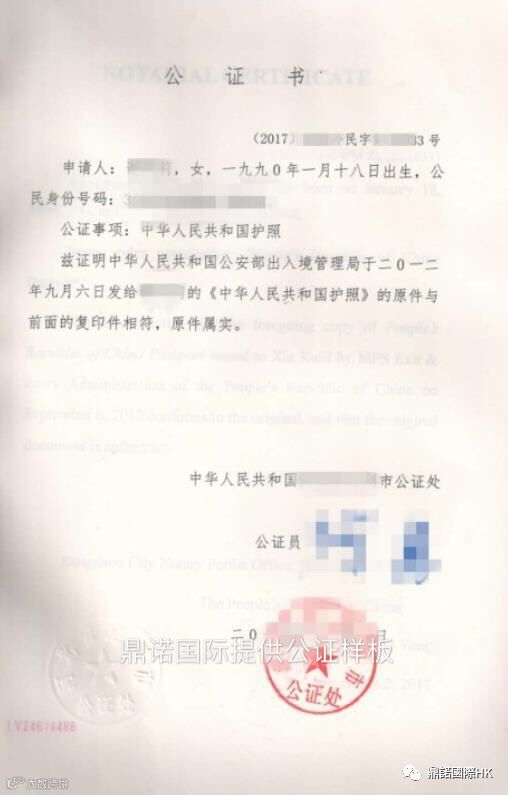 2.护照复印件与原件相符公证,