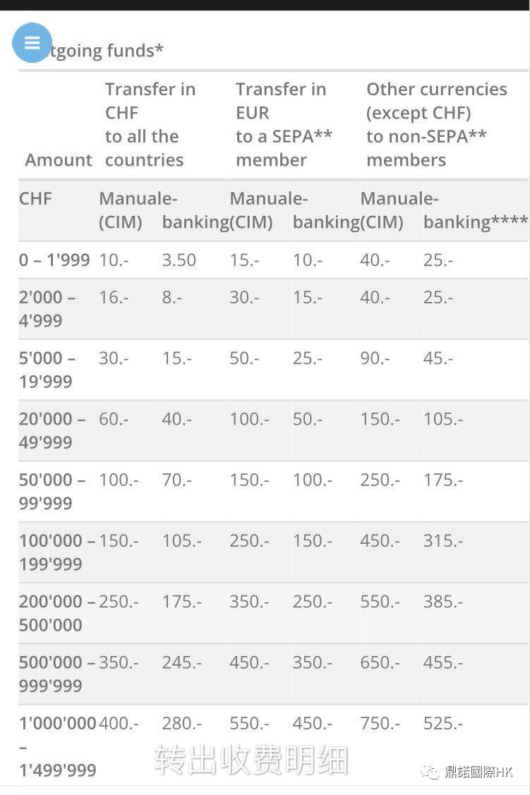 第一大列是转瑞士法郎到其他的国家。