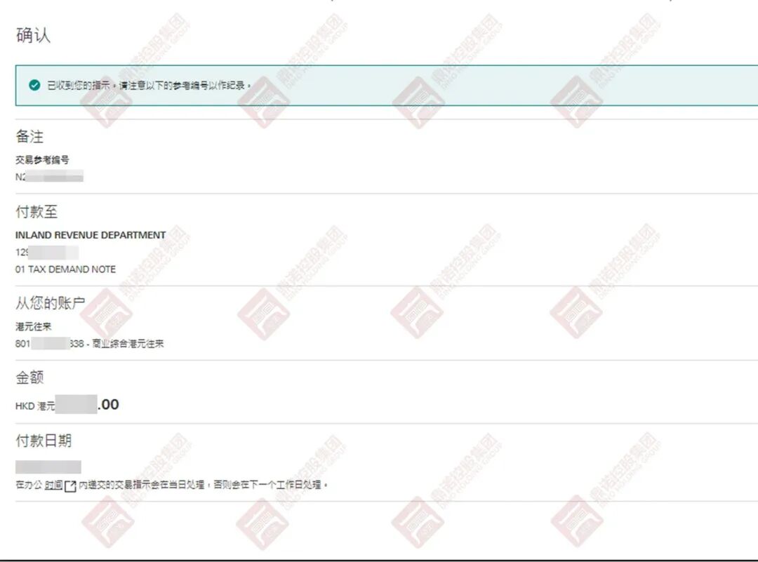 2. 收到税务局银行帐号信息后,再直接通过网上银行汇款缴交税款就可以了。