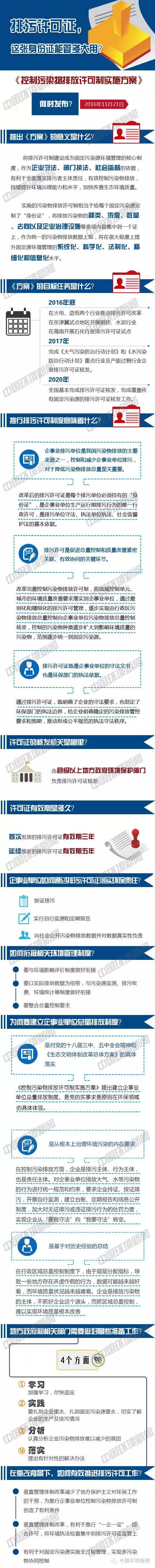 近日印发了《控制污染物排放许可制实施方案》,对完善控制污染物排放许可制度,实施企事业单位排污许可证管理作出部署,排污许可证制度的全面实施,将构建起固定污染源环境管理的核心制度,通过衔接环评制度,整合总量控制制度,为排污收费、环境统计等提供统一的污染排放数据。