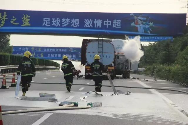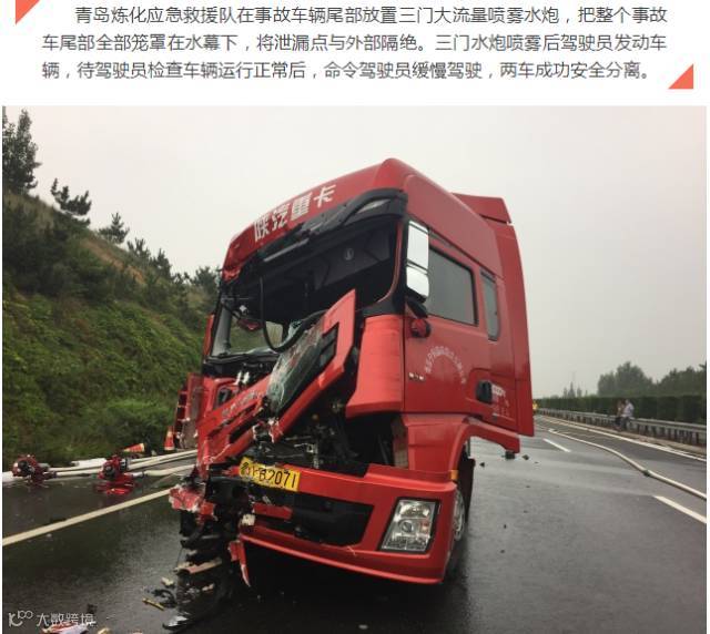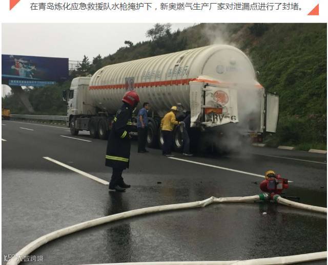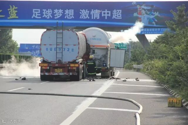 2017年7月26日15时,在青兰高速济南方向81公里处,一辆装有疑似液化石油气的罐车被一辆油罐车追尾,罐车尾部压力表和阀门被撞坏,导致液化气大量泄漏。